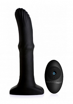Featuring patented Sliding Ring Technology, this exclusive Thunder Plug is purpose-built for dynamic anal stimulation! The internal bulging ring glides up and down the middle of the silicone shaft to rub your insides and please your depths, anus, and everything in between. Enjoy 3 speeds and 5 patterns of vibration alongside 5 ring sliding speeds to grind and buzz your ass! Control and customize each function combination to find what works best for your booty - perfect for solo enjoyment or playing with a partner. Rechargeable via included USB charging cable for endless backdoor fun! The slight ergonomic curve peaks at the tip for accurate stimulation on sensitive zones like the prostate, accentuated with gentle ridging for increased pleasure. The velvety shaft is designed with a 1.5 inch diameter and 7 inch insertable length for a gratifying fill and reach, perfect for experienced anal players who want a kinky new way to satisfy their ass. Designed with IPX5 waterproofing for ease of cleaning and shower friendly fun, and constructed with a premium velvety silicone formula that is phthalate-free, latex-free, and body safe for worry free anal fun so you can enjoy with confidence!