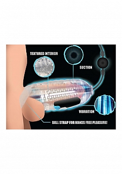 Experience the intense sensations and reach the peak of personal, sexual satisfaction with the Milker Pro. Let yourself explore being milked of every wet drop that comes from you as you feel the textured, stretchy sleeve with its grooves and nubs rubbing your phallus with each suction and stroke. Choose your vibration settings from 3 speeds and 7 patterns offered via the small, powerful bullet vibrator that is connected to the silicone sleeve. The ball strap on the bottom of the sleeve keeps it in place as the machine suctions the head of your phallus with an intensity up to 3000 RPMs! The long, detachable tube connects to the powerful motor that controls suction and has a liquid chamber in the center to keep any ejaculate from reaching the motor and makes clean up easy. Choose between 5 speeds and 5 patterns of suction for ultimate stimulation as you enjoy vibration and stroking. To keep it hands-free so you can relax, use the remote control included to change both suction and vibration patterns as you please! Plug the machine into the wall and connect the tube to it. Use your favorite water based lubricant on your penis and the interior of the sleeve, then slide it on and secure the ball strap below the testicles. Slip the bullet vibrator into the pocket of the sleeve after turning it on and pairing it with the remote control. Insert the hose tube into the small opening at the end of the sleeve and then flip the switch on the machine to turn the suction on. Play with different settings of suction and vibration until you find the one that will take you right over the edge. Lay back, relax and let your mind play out all your favorite fantasies as you experience the most intense milking of your life! After use, wash parts separately. Wash the tube and sleeve with warm water and soap and rinse the tube. Wash the exterior of the bullet and machine with a warm, wet washcloth and soap and then spray with a toy cleaner. Pat dry or wipe clean all items and store in a cool, dark place after fully dry. Recharge the bullet vibrator using the USB cable included. Replace remote battery as needed.