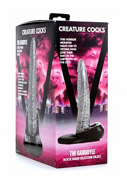 The strong protector of the night has awoken to violate you in all the best ways! The Gargoyle Rock Hard dildo has ridges and bumps along the shaft that come to a smooth point at the head. The black balls are pulled tight at the wide, flanged base. Perfect for hands-free fun, the suction cup base can simply be pressed firmly against any flat surface for solo riding. The dildo can also be used in strapon or for pegging play with a compatible harness. Silent during the day, the gargoyle awakens at night. Watching silently, their arrival is unannounced except for their cold, hard claws on your skin and a low growl. What you thought was hidden and secret was always seen and now your deep desires are exposed to them! Their rock hard penis is ready to penetrate your hot, wet holes. The dark protector of the night has come to plunge into your depths and make you beg for more! After play is over, wash the dildo with warm water and soap and use a toy cleaner to spray clean. Wipe dry and store in a cool, dark place out of direct sunlight.