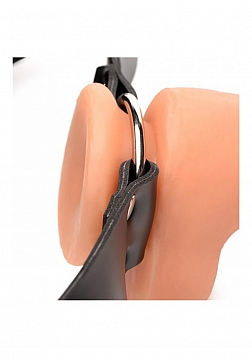 Play with your creativity and get the position you desire! With this strap harness, nearly anything is possible! Slip in a compatible strapon dildo through the metal O-ring and adjust the straps as needed. This versatile strap can be placed on objects such as chairs or people with wide hips! To keep clean, spray with a toy cleaner before and after use and wipe dry with a soft cloth. Hang up to keep the strap from becoming kinked.