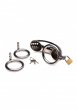 LOCKABLE STAINLESS STEEL CHASTITY CAGE WITH 3 RINGS