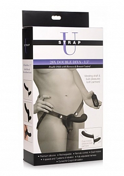 Enjoy penetrating your partner and being penetrated at the same time! With this pegging harness, you can enjoy the feeling of being filled as you give that sensation to your partner, as well. As a bonus, you can both enjoy 4 speeds and 7 patterns of vibration. Control it hands-free with the remote control that controls each dildo. The dildos are detachable from the PU leather harness and made of premium grade, phthalate-free silicone that is body-safe for worry-free fun! The small dildo is curved for G-spot stimulation that presses against your sweet spot as you thrust. Make sure to only use water-based lubricant for best results. The harness can be adjusted around your waist and thighs for a comfortable fit. After use, recharge the vibrating dildos with a USB charger and hand wash the silicone with warm water and antibacterial soap and a toy cleaner. Dry with a soft cloth and store in a cool, dark place out of direct sunlight and separate from other toys. Remote control requires 1xCR2032 battery (included). Measurements: LARGE DILDO insertable length: 6 inches, widest insertable width: 1.5 inches SMALL DILDO insertable length: 3.3 inches, widest insertable width: 1.4 inches Harness adjusts up to 48 inches waist circumference Thigh straps adjust from 13 inches to 26 inches in length