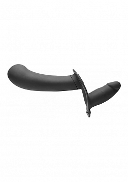 Enjoy penetrating your partner and being penetrated at the same time! With this pegging harness, you can enjoy the feeling of being filled as you give that sensation to your partner, as well. As a bonus, you can both enjoy 4 speeds and 7 patterns of vibration. Control it hands-free with the remote control that controls each dildo. The dildos are detachable from the PU leather harness and made of premium grade, phthalate-free silicone that is body-safe for worry-free fun! The small dildo is curved for G-spot stimulation that presses against your sweet spot as you thrust. Make sure to only use water-based lubricant for best results. The harness can be adjusted around your waist and thighs for a comfortable fit. After use, recharge the vibrating dildos with a USB charger and hand wash the silicone with warm water and antibacterial soap and a toy cleaner. Dry with a soft cloth and store in a cool, dark place out of direct sunlight and separate from other toys. Remote control requires 1xCR2032 battery (included). Measurements: LARGE DILDO insertable length: 6.25 inches, widest insertable width: 2 inches SMALL DILDO insertable length: 3.3 inches, widest insertable width: 1.4 inches Harness adjusts up to 48 inches waist circumference Thigh straps adjust from 13 inches to 26 inches in length