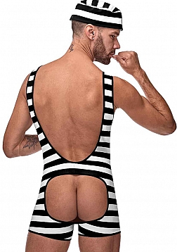 From the Costumes collection by Male Power, this style includes: A prisoner themed one-piece singlet with a cutout rear, low-cut back, prisoner patch #, and a matching cap.