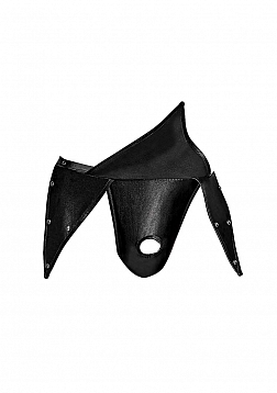 From the Fetish collection by Male Power, this style includes: A gladiator inspired kilt design featuring an attached thong with a cutout peephole, triangle flaps and decorative metal studs.