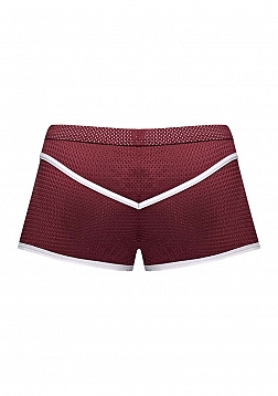 From the Sport Mesh collection by Male Power, the Sport Mini Short, features a stay put fabric covered waistband with a logo'd MP tag. Plush elastane sporty striping highlights the front, rear and legs