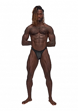 From the Barely There collection by Male Power, the Bong Thong features a low cut waist, a generous contoured pouch and a one inch t- back.