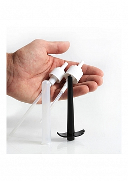 The Buck'd Lube Injector quickly converts most lube bottles into a lube injector and makes lubrication much easier. The injector which is great for trans men because of the dryness sometimes caused by the use of testosterone and the resulting imbalance in hormone levels. It's also something that many women going through menopause can benefit from if they are experiencing vaginal dryness. The 4" (10cm) interchangeable plastic injector comes with a small and large lube bottle cap. The injector has comfortable finger pump holds, that lets you inject the perfect amount of lubricant with no back flow. The injector also comes with a sanitary storage/travel cap. The hose attachment can be cut to fit multiple size bottles.