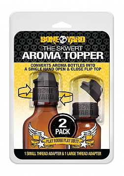 The Aroma Topper is an ABS plastic flip top that converts popper bottles into a single-handed open-and-close cap. It comes in two sizes, small and large, and fits most brands on the market. The top is easy to open and close with the thumb and features a nose cone that makes it easy to fit to your nostril. There is also a click sound that indicates to the user that the cap is closed so you can avoid spillage and odors which reduces the chance of ruining your sheets or clothing. It also useful during intercourse since it is attached directly onto the bottle and you don't have to worry about finding a small cap that can be easily lost after removal.