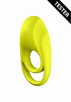 Double the strap, double the strength! Strap in and get ready for the ride of your life with the Spectacular Duo – adding sensations to both the penis and testicles. Experience intensified erections from the blood stasis effect. The additional loop around the testicles allows for intensified stimulation. Use the smaller loop around the penis, and the larger one around the testicles. The Spectacular Duo come equipped with a voluminous tickler, great for broad stimulation.Experience connoisseur level pleasure from the added testicle stimulation! When worn with a partner, utilize the Spectacular Duo as a partner tool to stimulate your lover as well. Utilize the one touch button on the front of your ring to easily control the 12 different vibration programs. The Spectacular Duo is made of body safe silicone, is rechargeable and waterproof (IPX7). Love Spectacularly.