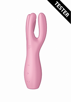 Be the connoisseur of your pleasure! This versatile take on a Lay-on vibrator comes equipped with a firm body and flexible arms for ideal clitoral and labia stimulation. Welcome to Threesome 3! Adjust the flexible arms to stimulate multiple different erogenous zones with ease. Experience broad and targeted stimulation with arms built to hit all the right spots! Use the smaller, rounded, arms for centered stimulation. With 3 powerful motors, one located in each arm, choose from 12 different vibration programs easily through the intuitive control panel. Use the +/- buttons to control the programs of the outer arms, and the ~ to control the middle arm. The Threesome 3 is made of body-safe silicone, is rechargeable and waterproof (IPX7). The threesome you never knew you neededÂ…