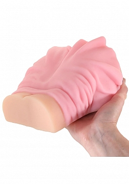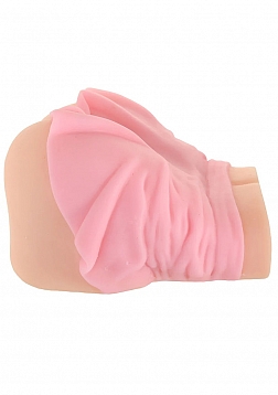 Nice and weighty, Jillian can be propped sturdily on just about any surface, but she's easy to hold in your hand(s), too. Depending on your mood, you can slip inside either the pink-lipped vagina or get comfy in her tight little butt. Either way, you'll feel the difference, as each channel is completely separate, and uniquely textured.
