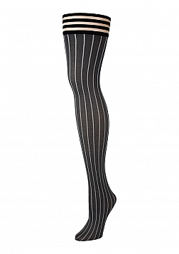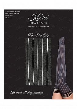 Kix'ies Annabelle is the 'all work, all play' grey pinstripe thigh high you need in your wardrobe! These thigh high stripes elegantly flaunt your legs for days! Kix'ies thigh-highs are designed for all-day wear, with a no-slip-grip. We offer Petite to Plus Size Stockings and are the #1 thigh-highs that actually stay up!