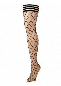 Here's a netting they won't soon be forgetting! The Michelle black large net fishnet thigh-high is perfect for layering under jeans or pairing with a little black dress for an evening out. These super trendy large fishnets by Kix'ies are the icing on the cake to all of your fall outfits, and add a nice edge! Kix'ies thigh-highs are designed for all-day wear, with a no-slip-grip. We offer Petite to Plus Size Stockings and are the #1 thigh-highs that actually stay up!