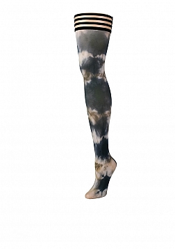 Stand out with Kix'ies trendy tie-dye thigh-highs and add a unique and fun kick to any outfit! The MacKenzie is black, white, and tan tie-dye. Perfect for layering under jeans, skirts or dresses and great for dancers and festival-goers! Kix'ies thigh-highs are designed for all-day wear, with a no-slip-grip. We offer Petite to Plus Size Stockings and are the #1 thigh-highs that actually stay up!