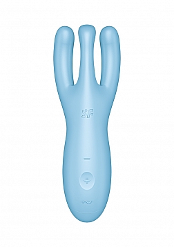 Be the connoisseur of your pleasure! This versatile take on a Lay-on vibrator comes equipped with a firm body and flexible arms for ideal clitoral and labia stimulation. Welcome to Threesome 4! Adjust the flexible arms to stimulate multiple different erogenous zones with ease. Experience broad and targeted stimulation with arms built to hit all the right spots! Utilize the smaller, rounded, arms for centered stimulation and the pointed tip of the middle arm for very targeted clitoral stimulation. With 3 powerful motors, one located in each arm, and bluetooth enabled, the Threesome 4 connects to the award-winning, free, Satisfyer Connect App, giving you the option to have complete control the powerful motors and truly customize your pleasure. The Threesome 4 is made of body-safe silicone, is rechargeable and waterproof (IPX7). The threesome you never knew you needed…