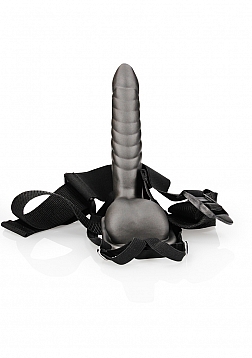 Ribbed Hollow Strap-On with Balls - 8" / 21 cm