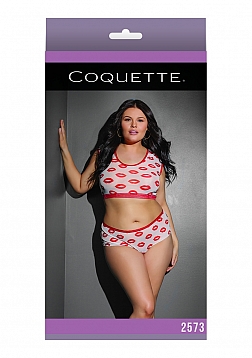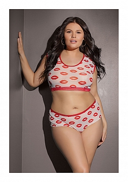 CROP TOP AND SHORTS WITH LIP PRINT - PLUS SIZE