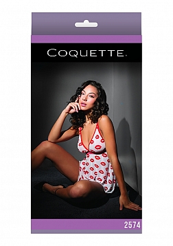 Lip Print Babydoll and Thong - One Size