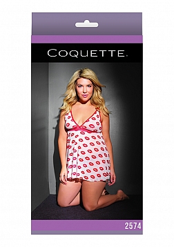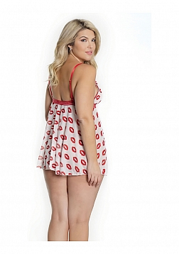 LIP PRINT BABYDOLL AND THONG - PLUS SIZE