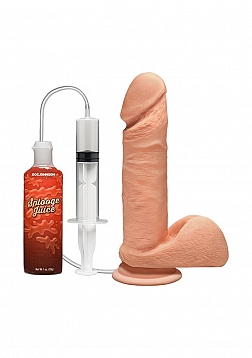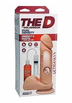 Everybody wants it! Molded from a real erect penis, the lifelike texture and proportions of the dual density ULTRASKYN Perfect D 7-Inch offer the most realistic look and sensation imaginable. The Perfect D is handcrafted to form the ideal balance between the soft, plush exterior and firm inner core that makes this collection so unique, and warms to body temperature with use. A strong suction cup base that affixes to most flat surfaces allows hands-free use, completing the realistic experience. The Squirting D comes with a 1 oz. bottle of Splooge Juice and squirts on command with handheld syringe.