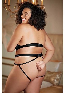 Top: Adjustable neck strap. Back neck hook opening. Center back hook and loop opening. Panty: Open back. Adjustable back straps. Center back hook and loop opening.