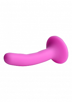 Enjoy a comfortable insertion that fits perfectly, vaginally or anally! If you are interested in penetrative pleasure, but want to take things at your own pace, try this velvet-soft shaft on for size! Compatible with most harnesses, you can use this dildo for a strap-on experience or on its own with the suction-cup base. The subtle curve will stimulate the G-spot or P-spot, creating an incredible experience that will have you coming back for more! The phthalate-free and non-porous silicone is body-friendly and sanitizes easily with mild soap and warm water. Avoid use with silicone lube.
