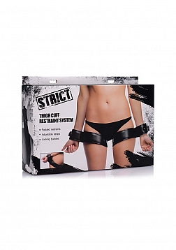 Your play thing will not be able to move their wrists when you bind them with this unique cuff set. Each restraint buckles around the thigh and connects to a wrist restraint. All four buckles are made with a unique locking system that allows you to keep them captive. Each wrist and thigh restraint is fully adjustable and padded for comfort. Put them into whatever position you desire and they will be trapped for your enjoyment!