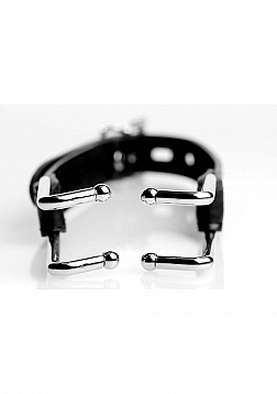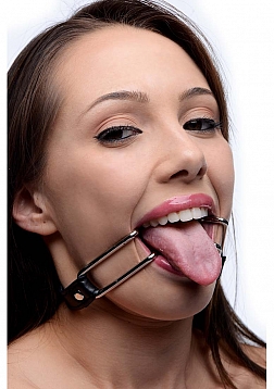 Pry that slutty mouth open with this intimidating spreader! Place the rounded tips in either side of their mouth and then adjust the strap until their lips are pulled taut. Their unique vulnerability and humiliation will fuel your arousal. A locking buckle allows you to trap them in the vice, leaving their mouth open for whatever invasion your devious mind can think up! Treat yourself a sweet desperation from your lover.