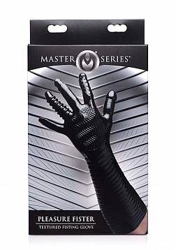 Give your hand some texture during fisting play! This long glove is so versatile that it may become a staple in all of your sexual experiences! So many ways to use aside from full-fist penetration... finger, stroke, massage, or spank. Whether you are male or female, playing solo or with a partner, this glove will show you love! Each of the five fingers is uniquely shaped for a range of sensations during anal or vaginal insertion: smooth and tapered, bold ridges, penis-shaped, raised nubs, or bulbed with subtle ribbing. The palm has a zig-zag tread that brings extra excitement to a handjob or masturbation, and the entire forearm is smoothly ribbed for additional stimulation as you push deeper inside! This double-sided glove works on both hands and is compatible with silicone and water-based lubricants. Clean with mild soap and water.