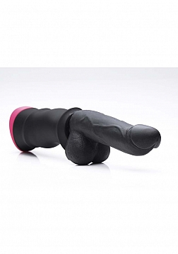 Experience ultra-powerful pounding action with this hand-held thrusting dildo. Discover the 2 intense speeds from the industrial motor, for up to 200 thrusts per minute. Pummel yourself or your partner with the defined ridges and veins of the realistic dong! You have never been banged like this before... The 6.75 inch dildo attachment is made of non-porous and phthalate-free silicone. While it is not compatible with silicone lubricants, it is easily sanitized with mild soap or toy cleaner. An additional dildo attachment is included that is flexible to be bent into the perfect angle to target your favorite parts! Further care instructions are included.