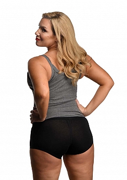 Combine the comfort of boxer-briefs with the functionality of a built-in strapon harness for ultimate versatility! This breathable, cotton and spandex blend underwear is snug fitting with room to move, stretch and play! This Active Style Harness is particular good if you want to be able to pop your strapon dildo into place without having to change clothes, strip down, or adjust lots of harness straps. Just pop the dildo in and you're ready to go! The underwear has a thick, supportive elastic band that helps carry the weight of some heavier dongs, and a stretchable O-ring in the front that fits and adjusts to fit most dildos. After you're done satisfying you're partner, your boxer-brief pair is easily washed on a 'cool' setting in the washing machine!