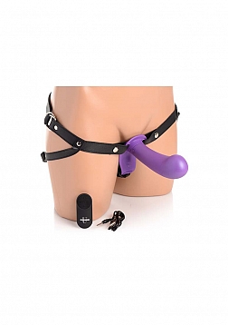 Key Features: Vibrating Dildos: Choose between 4 speeds and 7 patterns of vibe in dual motors for unique vibration in each. After use, recharge with included USB charger. Premium Silicone: Smooth, plush and phthalate-free silicone means it's deliciously sensual and body safe. Adjustable Harness: Harness adjusts up to 48 inches for a comfortable fit. Remote Control: The remote control allows you to be hands-free as you play with yourself and a partner. The distance for the remote is 32ft; requires 1xCR2032 battery (included).