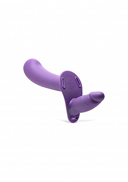 The dildos are detachable from the PU leather harness and made of premium grade, phthalate-free silicone that is body-safe for worry-free fun! The small dildo is curved for G-spot stimulation that presses against your sweet spot as you thrust. Make sure to only use water-based lubricant for best results. The harness can be adjusted around your waist and thighs for a comfortable fit.
