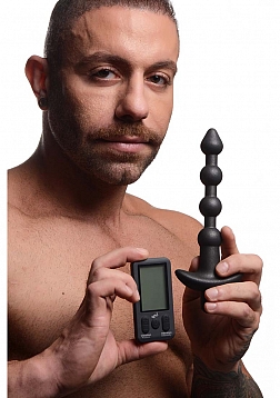 Bang your booty with these powerful metallic silicone anal beads! Velvety smooth and flexible enough to keep your anal play comfortable, these supple balls are fit for both anal beginners and experts alike. The tapered tip makes insertion while the wide base prevents these anal delights from going too far into your backdoor. Control your vibes with the push of a button or with the included wireless remote control! The illuminating LCD display remote allows you to view exactly what intensity level and vibration pattern you are on even in the dark. With 5 different vibration patterns and 5 intensity levels you can mix and match for a combined 25 different combinations of play, giving you plenty of options with when the mood strikes. The added remote is great for solo use or exciting partner play! The powerful motor found in the bullet vibe is rechargeable for endless fun - simply insert the USB charging cable when the power runs low to recharge. Enjoy each and every bead of this accessible anal toy with your favorite water based lubricant! This sultry set of beads is perfect for anal training, improving your masturbation sessions, or for kinky couples who need a buzz in their butt while they perform naughty acts together.