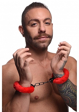 These furry, red cuffs are soft and sensual against your lover's wrists. The strong, metal cuffs inside won't cut into their delicate skin. Instead you have the padding of this faux fur, artificial wool! The cuffs are fully adjustable and close as tight as 4.5 inches and open wide to a 7 inch circumference. Included with the cuffs are 2 keys so you always have a spare! To clean, simply spot clean the wool with warm water and soap and a washcloth, then let dry.
