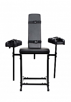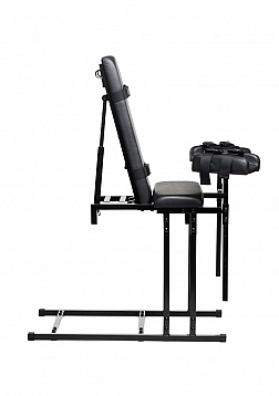 Key Features: Adjustable Back Rest: Sit up or lean back with this adjustable back rest. Strap your partner in and move them up or down for the perfect angle! Plush, Comfortable Pads: Perfect for long sessions, these plush pads are super comfortable and cushion against hard thrusting or movement. Heavy Duty Frame: Get a frame that can handle rough play! This heavy duty frame is made of metal and wood so it holds up as a durable piece of furniture. Quick Release Buckles: The ABS plastic buckles are easy to release for when you partner needs to sit up, readjust, or pause the scene. D-Rings to Attach Bondage Accessories: Attach wrist cuffs or other bondage accessories to the D-rings to add another element to your play! Compatible with the Dicktator Extreme Sex Machine: While this item is not included in purchase, this chair is perfectly paired with this satisfying sex machine!