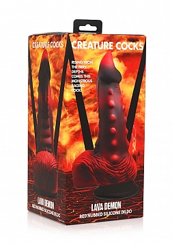 Bring this Lava Demon Dildo into your next fantasy scene! Made of firm and flexible premium silicone, it is silky smooth, plush, and phthalate-free for body-safe fun! Use your favorite water-based lubricant on this sexy dong and enjoy the tapered tip of the head, the gradually widening shaft, the rows of delicious bumps and the wrinkled, demon balls at the base! This red and black dildo is thick and seductive and perfect for solo or couple's play! Use it alone with the strong, suction-cup base; place it firmly on any flat surface and ride and bounce on it until you're fully satisfied! Use it with a partner, too! It is strap-on harness compatible and perfect for a kinky cosplay scene! After use, wash with warm water and mild soap, then spray with a toy cleaner and pat dry. Store separately from other silicone toys.