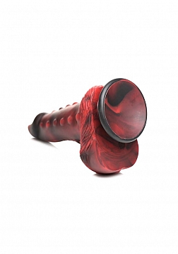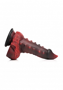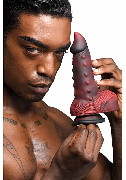 Key Features: Fantasy Dildo: This thick, demon dildo with it's red and black color belongs to a creature that comes from the core of the earth and has crept from the lava fields to find its prey. With a deliciously tapered tip, a thick shaft that widens towards the base, and rows of seductive bumps along its sides, it is built to please. Near the base are wrinkled, textured, demon balls that -if you can get deep enough- you can bounce on as you ride! Premium Silicone: Made of firm yet flexible premium silicone, this dildo is silky smooth, plush, and phthalate-free. Use only with water-based lubricants. Suction Cup Base: Place the base on any flat surface so the suction cup can adhere and stay in place. Enjoy riding this dildo against a table, floor or wall! Harness Compatible: Enjoy with a partner! This dildo is fully harness compatible for roleplay fun!