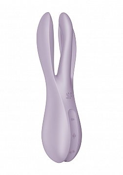 Be the connoisseur of your pleasure! This versatile take on a Lay-on vibrator comes equipped with a firm body and flexible arms for ideal clitoral and labia stimulation. Welcome to Threesome 2! Adjust the flexible arms to stimulate multiple different erogenous zones with ease. Experience broad and targeted stimulation with arms built to hit all the right spots! Utilize the bigger arms for a broader stimulation. With 3 powerful motors, one located in each arm, choose from 12 different vibration programs easily through the intuitive control panel. Use the +/- buttons to control the programs of the outer arms, and the ~ to control the middle arm. The Threesome 2 is made of body-safe silicone, is rechargeable and waterproof (IPX7). The threesome you never knew you neededÂ…