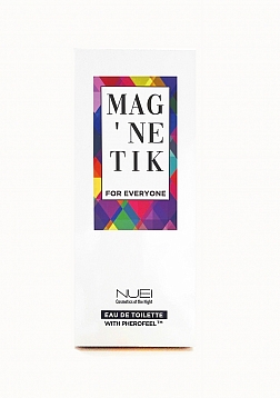 “MAG'NETIK for everyone is the only non-binary cologne on the market that includes PHEROFEEL (TM) for him and PHEROFEEL (TM) for her, exclusive by NUEI". A scent for her, for him and for them.