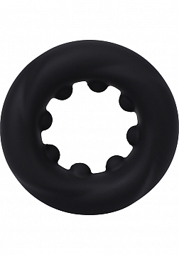 Soft and stretchy, with internal nubs for added stimulation, The Twist is an ideal thick silicone cock ring. Its stretchiness allows it to be worn over the balls and shaft to delay ejaculations and prolong erections. Phthlate-Free and Body-Safe.