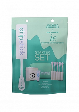 Everything you need for a busy weekend! The Starter Set includes 5 dripsticks designed to absorb excess cum after sex, 1 (not-for-hands) Hand Towel, and a .35 oz tube of Doc Johnson Intimate Enhancements G-Spot Gel, all in a discreet travel bag.