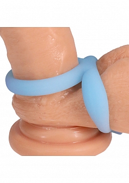 Enhance your orgasms with this double ring that stretches comfortably around the base of the penis and testicles. It is designed to help you achieve a longer-lasting and stronger erection, with a clit tickler on the ring to provide additional pleasure for your partner. The phthalate-free, body-safe, glow-in-the-dark material keeps the bedroom aglow as long as you last.