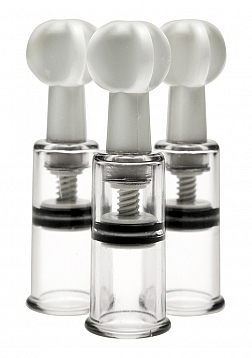 Enjoy powerful suction with this triple set of demurely sized suction cylinders. Just apply to any area that would benefit from increased sensitivity and blood flow, no pumps or accessories needed. These self-contained suction devices work with a simple twist. Silent, simple, and discreet, these suckers can be taken and used practically anyway for on the go stimulation. Lubed internally for smooth movement and a strong seal that makes for sublimely powerful suction.