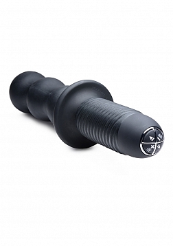 Each of the three bulging bulbs will fill you with buzzing girth as you push this throbbing thruster deeper and deeper inside! Grab hold of the textured hilt and plunge this silky-smooth, silicone dildo into your hole to experience 10 powerful vibration settings. With the push of a button at the base of the handle, cycle through 3 intensities and 7 pulsation patterns that will blow your mind as they rattle your insides. This pleasure tool is also waterproof, making it perfect for steamy shower sessions or private pool parties. Made of premium silicone, this vibrating thruster is non-porous, phthalate-free, and easy to sanitize with mild soap and warm water. Avoid use with silicone lubricants.