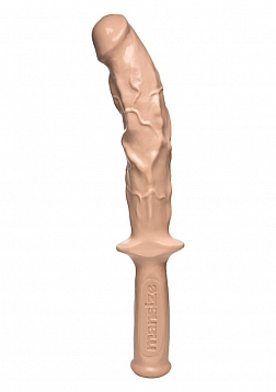 This impressively large realistic dildo has a highly textured veined surface, a sturdy handle, and and has a soft yet firm feel. With 9" of insertable pleasure and a hefty girth, The Hard Rammer is not for beginners. For the more seasoned user, however, this realistic wonder is sure to fulfill every need. The handle is perfect for self use, and ideal for partner play as well. This toy is phthalate-free and body-safe.