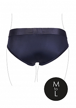 The Vibrating Strap-on High-cut Brief sits high on the thigh into the hip.