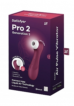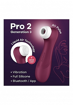 Get ready for a new wave of pleasure! The Pro 2 Generation 3 is the latest edition of our iconic Air Pulse pleaser, now also with vibration and innovative Liquid Air Technology which creates a sensation like the sensual surge of pulsing water. With a smooth, silky silicone finish and a weighted head for ergonomic handling, the Pro2 Gen3 delivers the intense orgasms you know and love. But now, you'll be flooded with the pleasure of a tapping touch as the air pressure waves arouse your clitoris through a thinly sheathed cap. Bluetooth enabled, the Pro2Gen 3 Connect App pairs with our award-winning, free, Satisfyer Connect app, giving you the option to have complete control the powerful motor and truly customize your pleasure. Of course, you always have the option to use without the app and control via the panel buttons for 11 pressure wave and 12 vibration program options. The Pro2 Gen 3 Connect App is made of body safe silicone, is rechargeable, and is IPX7 Waterproof rated. Enjoy the rush!