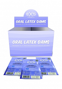 EXS Oral Dams are a great product to use with flavoured lubes for a greater flavourful experience. They are the 1st Oral Dams to be CE Certified and conforms to ISO 29942. Each dam is individually wrapped allowing the dams to be distributed quickly and efificiently. EXS Oral Dams provide a protective barrier when performing oral sex. Made of natural rubber latex, EXS Oral Dams are non-scented.